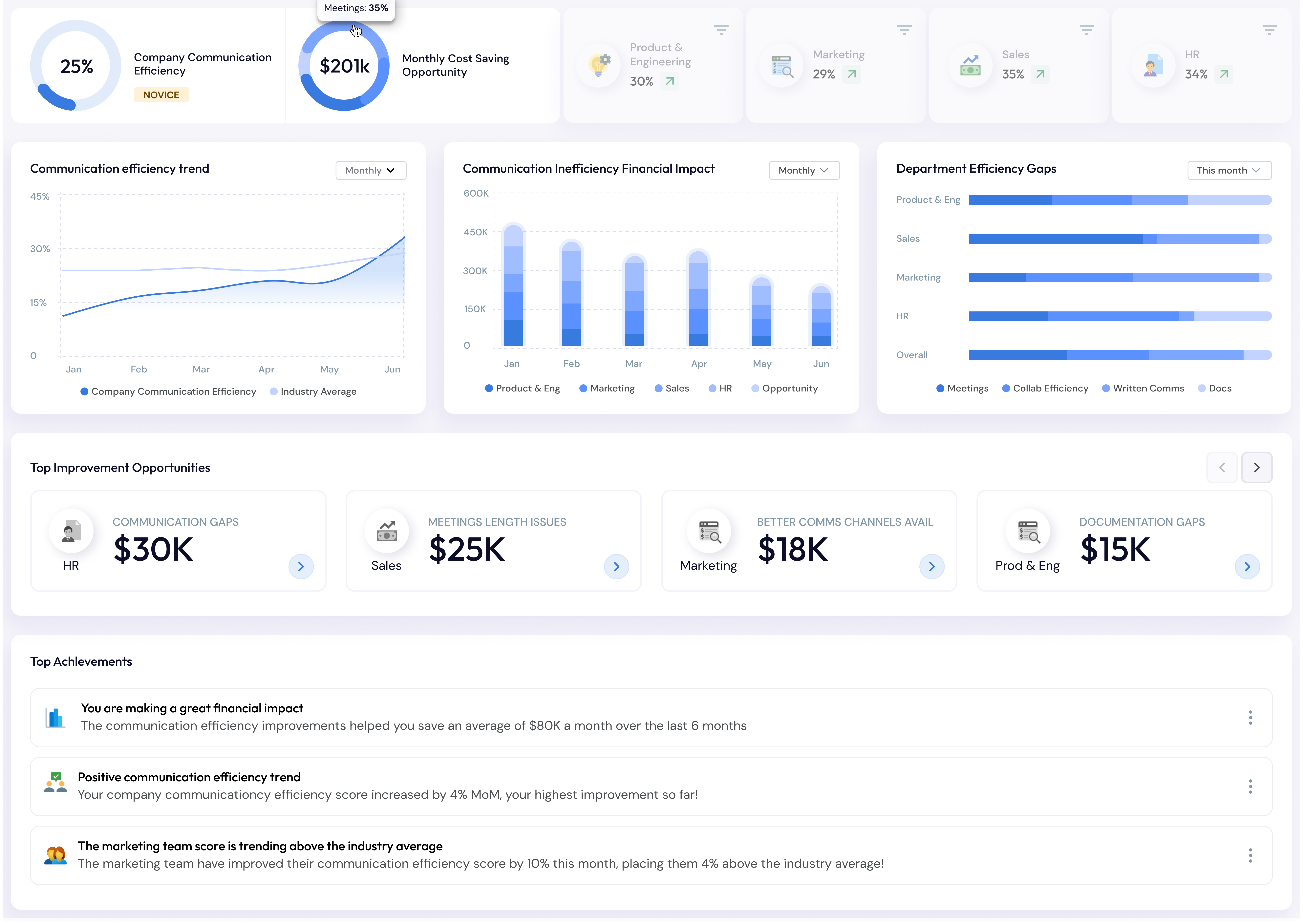Leverage in-depth insights to enhance communication efficiency across meetings, emails, messages and documents. Address inefficiencies with tailored Al-powered recommendations, empowering you to only focus on what drives impact.